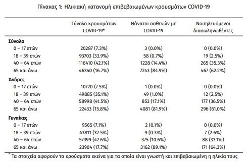Το 95.7% είχε υποκείμενο νόσημα ή/και ηλικία 70 ετών και άνω.