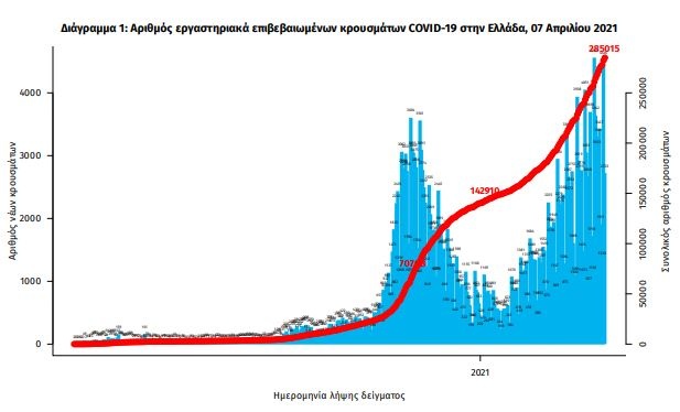 Κορονοϊός - Όλες οι ειδήσεις: Την Τετάρτη, 7 Απριλίου 2021, ο ΕΟΔΥ ανακοίνωσε 3.445 νέα κρούσματα του νέου ιού στη χώρα, εκ των οποίων τα εννέα εντοπίστηκαν κατόπιν ελέγχων στις πύλες εισόδου της χώρας.