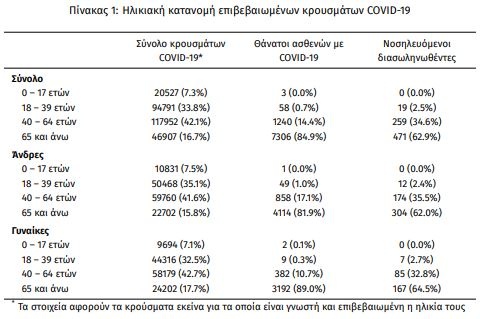 Το 95.6% είχε υποκείμενο νόσημα ή/και ηλικία 70 ετών και άνω.