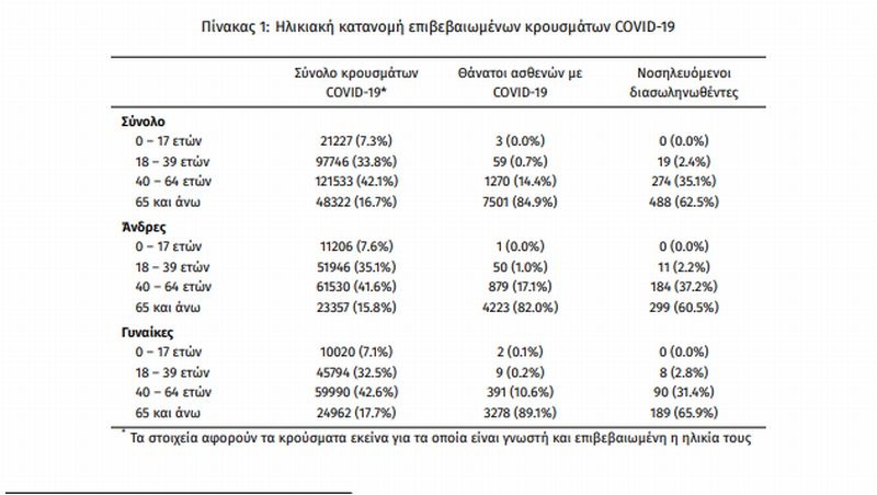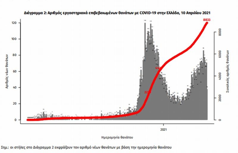 Οι νέοι θάνατοι ασθενών με COVID-19 είναι 75, ενώ από την έναρξη της επιδημίας έχουν καταγραφεί συνολικά 8.833 θάνατοι. Το 95.6% είχε υποκείμενο νόσημα ή/και ηλικία 70 ετών και άνω.