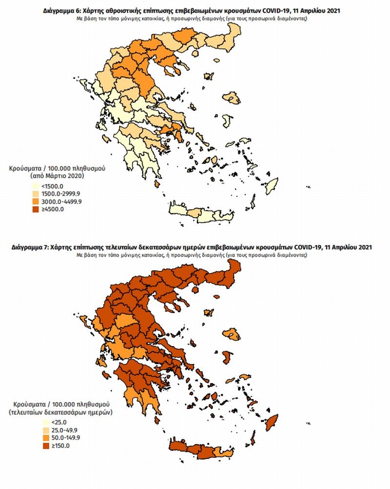 Ο χάρτης αποτυπώνει τη γεωγραφική κατανομή των συνολικών κρουσμάτων COVID-19 (από την αρχή της επιδημίας) ανά Περιφερειακή Ενότητα της χώρας, με βάση την δηλωθείσα διεύθυνση μόνιμης κατοικίας του ασθενούς, ή τη διεύθυνση προσωρινής διαμονής για τους τουρίστες και άλλους προσωρινά διαμένοντες στην Ελλάδα. Συμπεριλαμβάνονται τόσο κρούσματα με ιστορικό ταξιδίου (“εισαγόμενα”) όσο και κρούσματα με πιθανή εγχώρια μετάδοση.