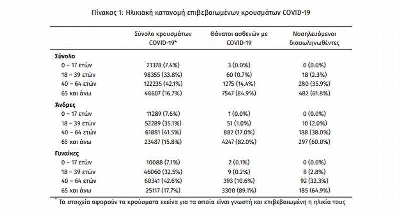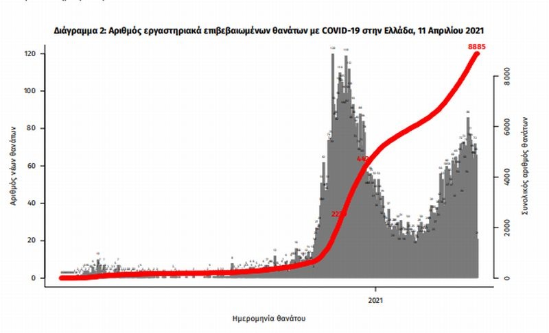 Οι νέοι θάνατοι ασθενών με COVID-19 είναι 52, ενώ από την έναρξη της επιδημίας έχουν καταγραφεί συνολικά 8.885 θάνατοι. Το 95.6% είχε υποκείμενο νόσημα ή/και ηλικία 70 ετών και άνω.