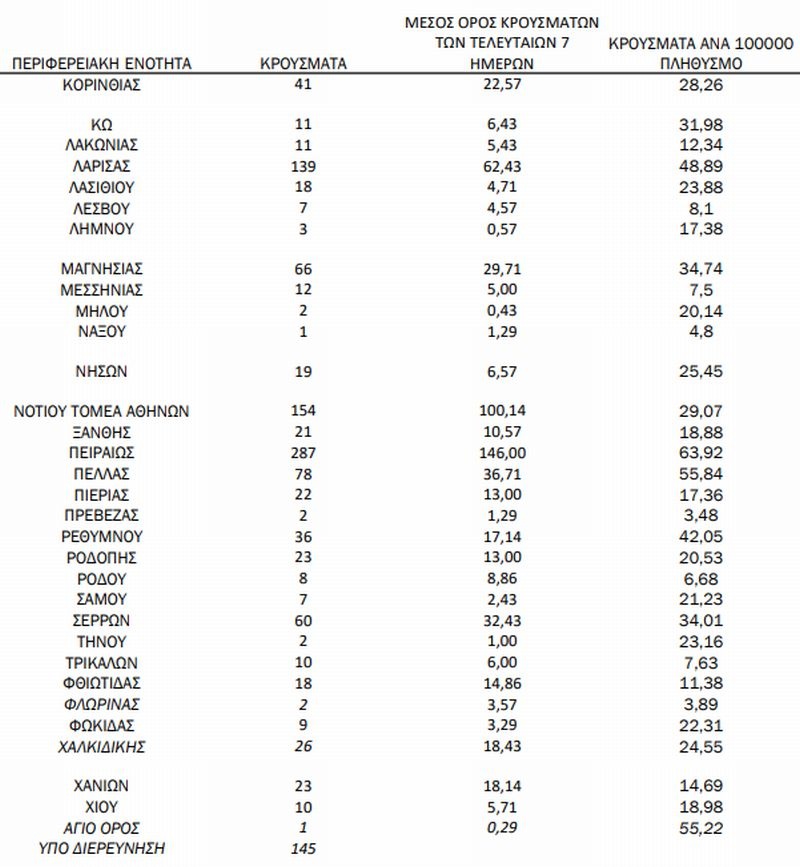 Τα κρούσματα ανά Περιφερειακή Ενότητα