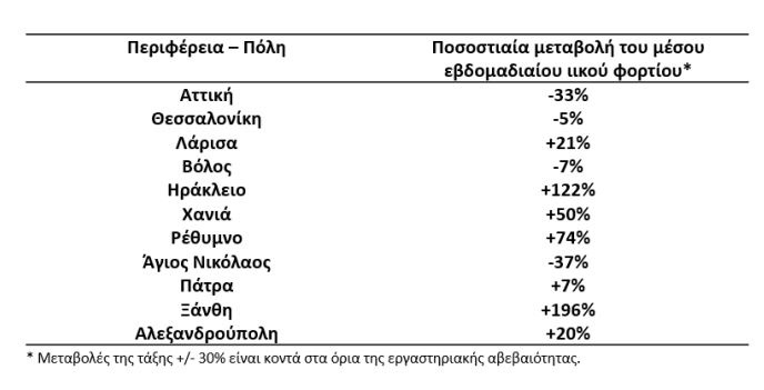 Οι αυξητικές τάσεις κυμαίνονται από +50% στα Χανιά μέχρι +196% στην Ξάνθη. Επισημαίνεται ότι οριακές θεωρούνται οι αυξήσεις που παρατηρήθηκαν στην Αλεξανδρούπολη (+20%) και στη Λάρισα (+21%) καθώς στις δύο αυτές περιοχές οι μεταβολές εμπίπτουν στα όρια της εργαστηριακής αβεβαιότητας.