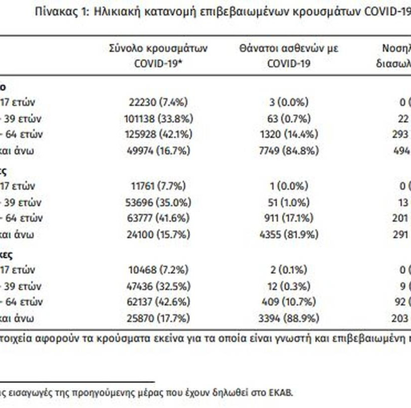 Οι νέοι θάνατοι ασθενών με COVID-19 είναι 81, ενώ από την έναρξη της επιδημίας έχουν καταγραφεί συνολικά 9.135 θάνατοι. Το 95.5% είχε υποκείμενο νόσημα ή/και ηλικία 70 ετών και άνω.