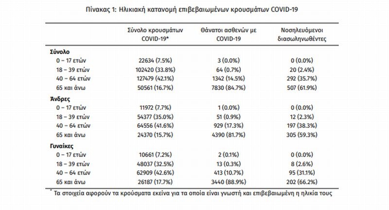 Οι νέοι θάνατοι ασθενών με COVID-19 είναι 104, ενώ από την έναρξη της επιδημίας έχουν καταγραφεί συνολικά 9.239 θάνατοι. Το 95.5% είχε υποκείμενο νόσημα ή/και ηλικία 70 ετών και άνω.