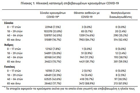 Το 95.5% είχε υποκείμενο νόσημα ή/και ηλικία 70 ετών και άνω.