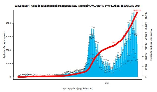 Κορονοϊός - Όλες οι ειδήσεις: Την Κυριακή, 18 Απριλίου 2021, ο ΕΟΔΥ ανακοίνωσε 1.829 νέα κρούσματα του νέου ιού στη χώρα, εκ των οποίων τα τρια εντοπίστηκαν κατόπιν ελέγχων στις πύλες εισόδου της χώρας.