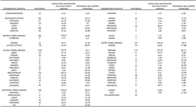 Τα κρούσματα ανά Περιφερειακή Ενότητα