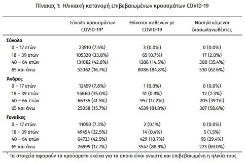 Το 95.5% είχε υποκείμενο νόσημα ή/και ηλικία 70 ετών και άνω.