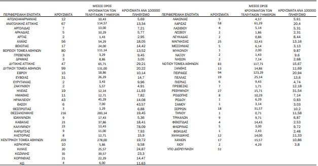 Τα κρούσματα ανά Περιφερειακή Ενότητα
