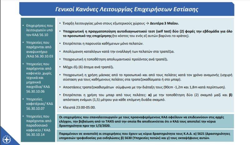 Γενικοί κανόνες για την επαναλειτουργία της εστίασης