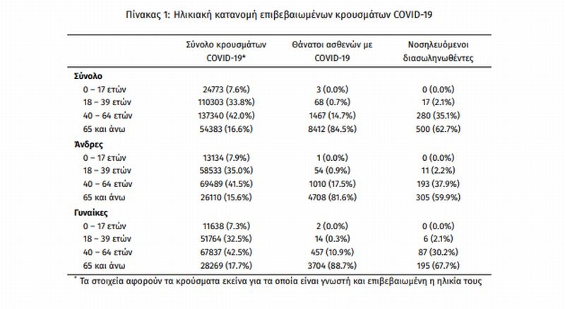 Οι νέοι θάνατοι ασθενών με COVID-19 είναι 86, ενώ από την έναρξη της επιδημίας έχουν καταγραφεί συνολικά 9.950 θάνατοι. Το 95.5% είχε υποκείμενο νόσημα ή/και ηλικία 70 ετών και άνω.