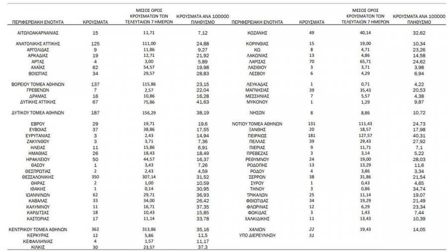 Τα κρούσματα ανά Περιφερειακή Ενότητα