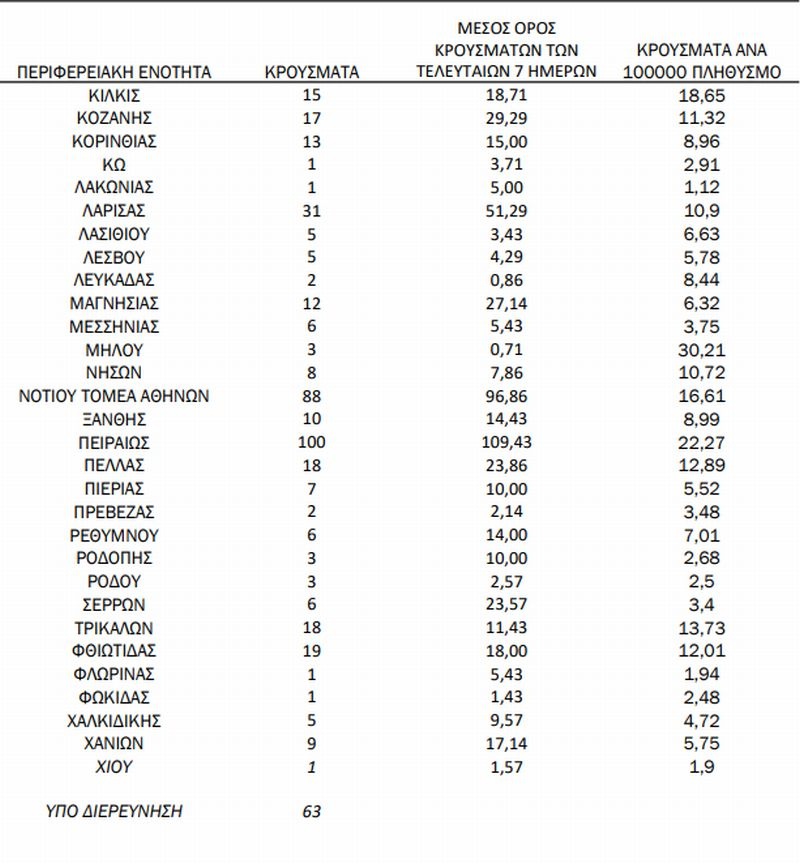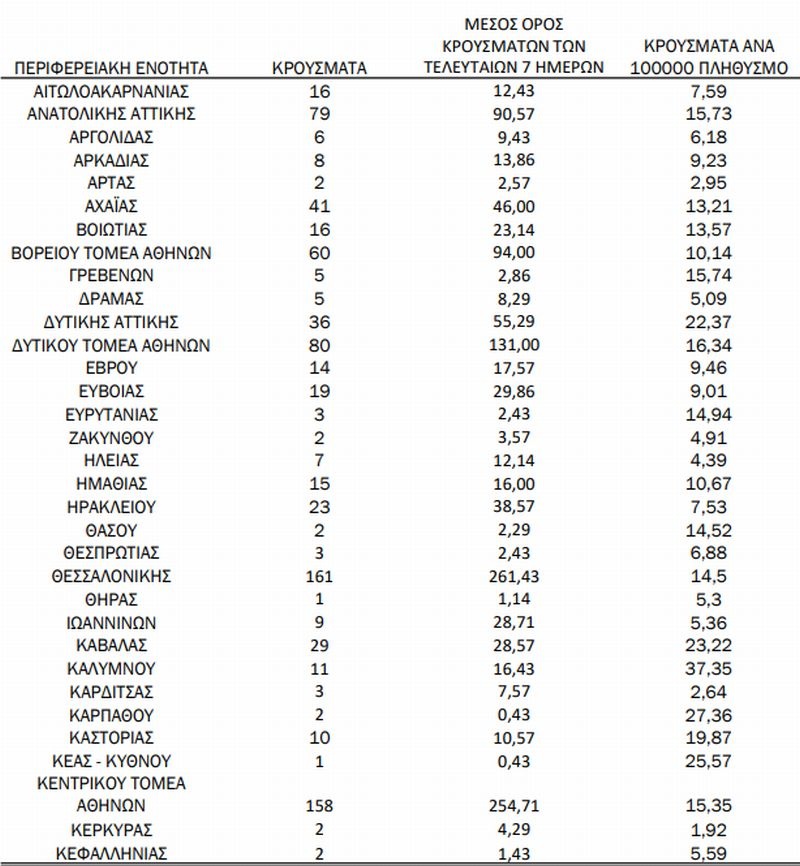 Τα κρούσματα ανά Περιφερειακή Ενότητα