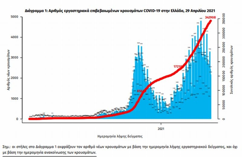 Κορονοϊός - Όλες οι ειδήσεις: Τη Μεγάλη Πέμπτη, 29 Απριλίου 2021, ο ΕΟΔΥ ανακοίνωσε 2.435 νέα κρούσματα του νέου ιού στη χώρα, εκ των οποίων τα πέντε εντοπίστηκαν κατόπιν ελέγχων στις πύλες εισόδου της χώρας.