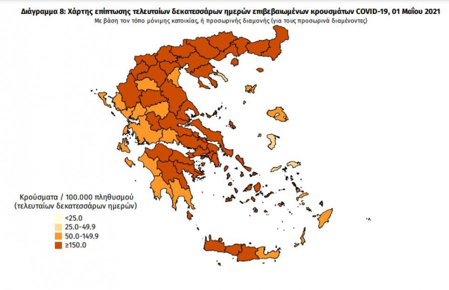 Κρούσματα σήμερα: Mεγάλη μείωση κατέγραψε σήμερα, Μ. Σάββατο, η πανδημία του κορονοϊού στη χώρα, σύμφωνα με τα τελευταία στοιχεία του ΕΟΔΥ