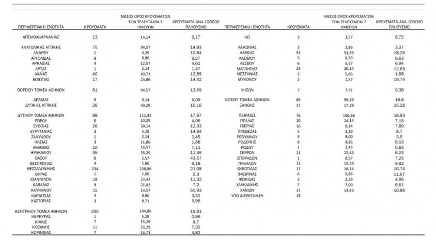 Τα κρούσματα ανά Περιφερειακή Ενότητα