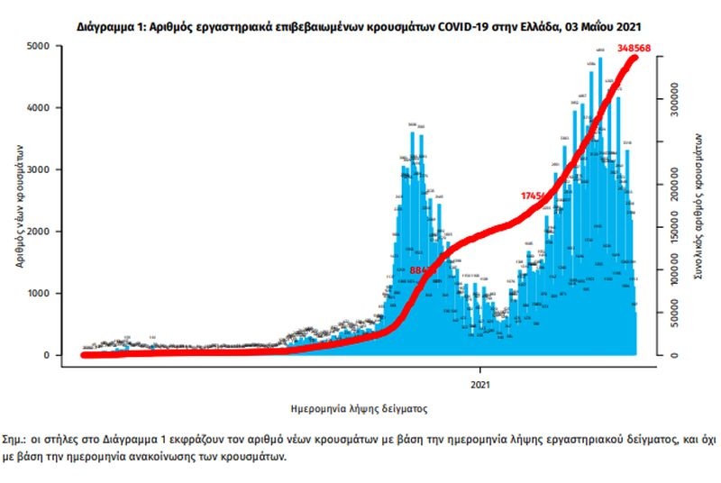 Κορονοϊός - Όλες οι ειδήσεις: Τη Δευτέρα του Πάσχα, 3 Μαΐου 2021, ο ΕΟΔΥ ανακοίνωσε για τις τελευταίες 48 ώρες, 2.146 νέα κρούσματα του νέου ιού στη χώρα, εκ των οποίων τα εννέα εντοπίστηκαν κατόπιν ελέγχων στις πύλες εισόδου της χώρας.