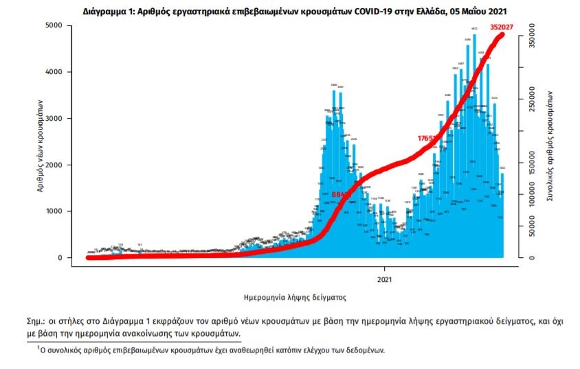 Κορονοϊός - Όλες οι ειδήσεις: Την Τετάρτη, 5 Μαΐου 2021, ο ΕΟΔΥ ανακοίνωσε, 2.093 νέα κρούσματα του νέου ιού στη χώρα, εκ των οποίων τα έξι εντοπίστηκαν κατόπιν ελέγχων στις πύλες εισόδου της χώρας.