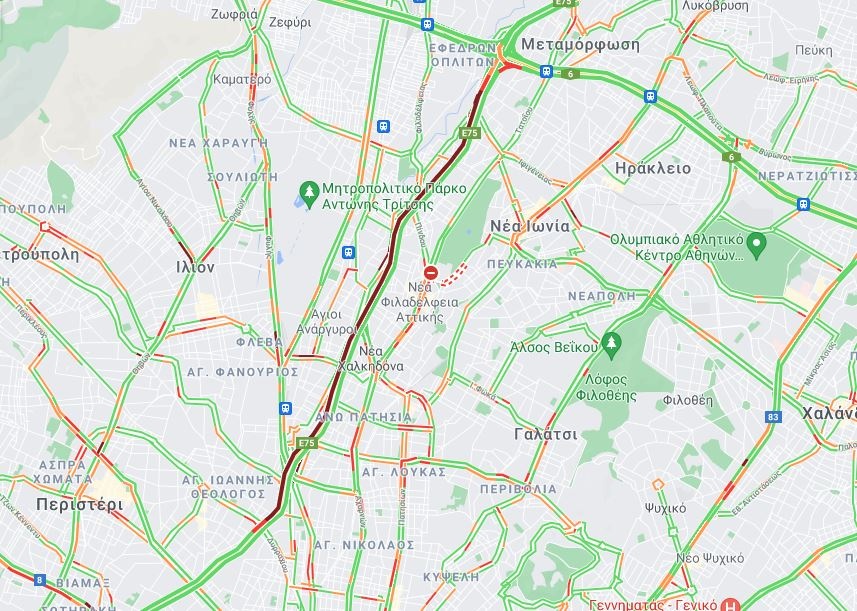 Δείτε τον χάρτη της Google με την κίνηση στη λεωφόρο Κηφισού.