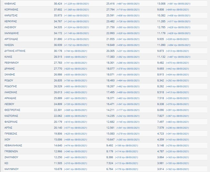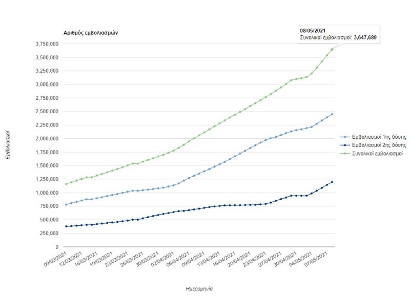 Τα δεδομένα του εμβολιασμού το Σάββατο 8 Μαΐου 2021