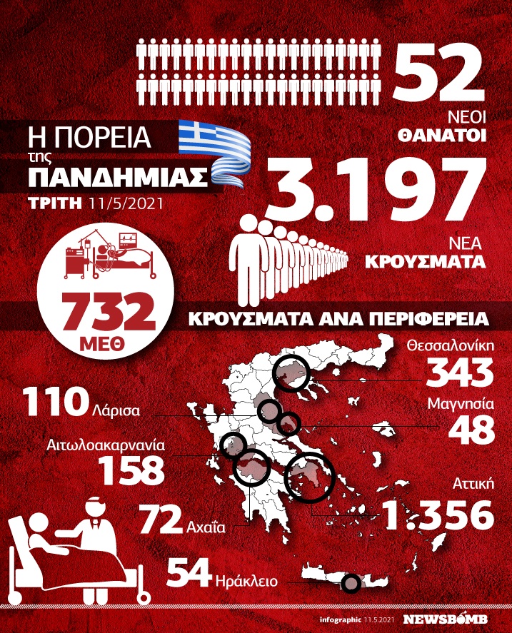 Ιδιαίτερα ανησυχητικά ήταν τα δεδομένα για τον κορονοϊό που δημοσίευσε ο ΕΟΔΥ την Τρίτη (11.05). Η αύξηση στα κρούσματα προκαλεί προβληματισμό, ιδιαίτερα για τις περιοχές που δείχνουν αντιμετωπίζουν πιεστικές καταστάσεις λόγω επιβαρυμένης επιδημιολογικής κατάστασης.