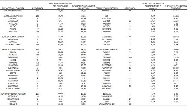 Τα κρούσματα ανά Περιφερειακή Ενότητα