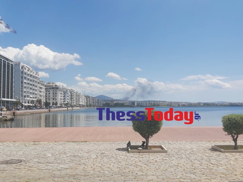 Όπως μπορείτε να δείτε στη φωτογραφία του ThessToday.gr οι πυκνοί καπνοί της πυρκαγιάς είναι ορατοί μέχρι το κέντρο της Θεσσαλονίκης.