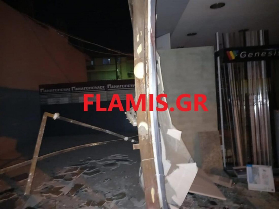 Η μηχανή έσπασε την τζαμαρία και μπήκε μέσα στο κατάστημα. Στο σημείο επικράτησε πανικός.