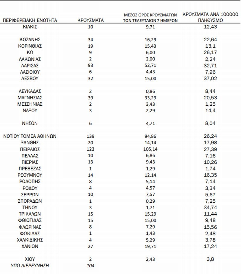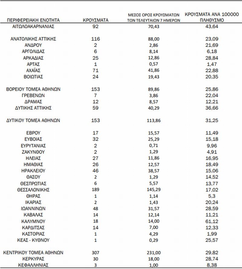 Τα κρούσματα ανά Περιφερειακή Ενότητα