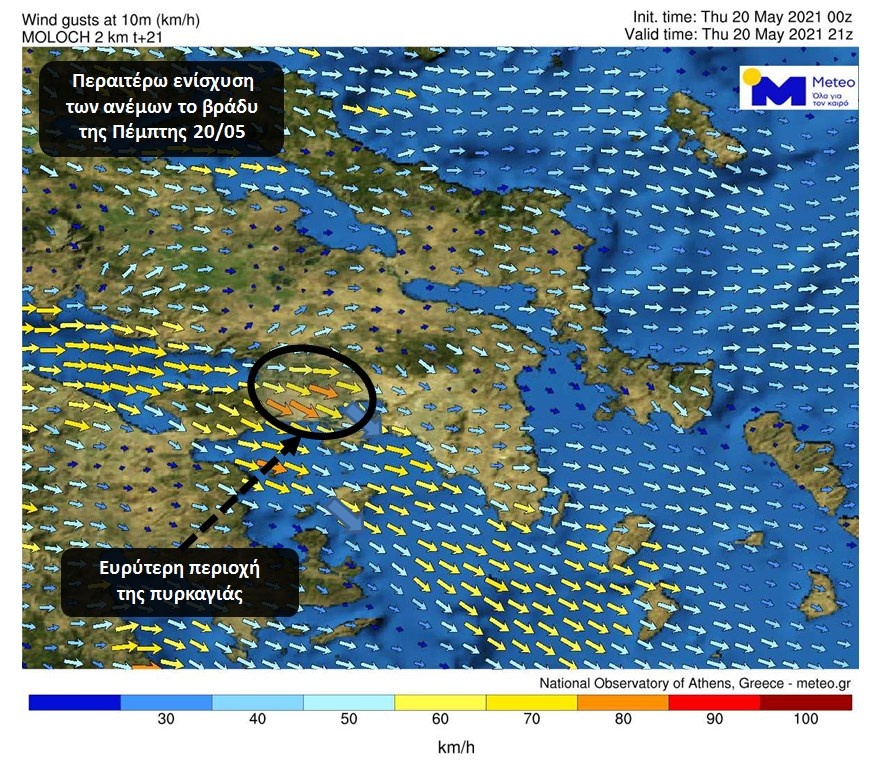 Καιρός: Περαιτέρω ενίσχυση των ανέμων απόψε στην περιοχή της πυρκαγιάς, σύμφωνα με το meteo του Αστεροσκοπείου – Ο καιρός αύριο Παρασκευή, 21 Μαΐου