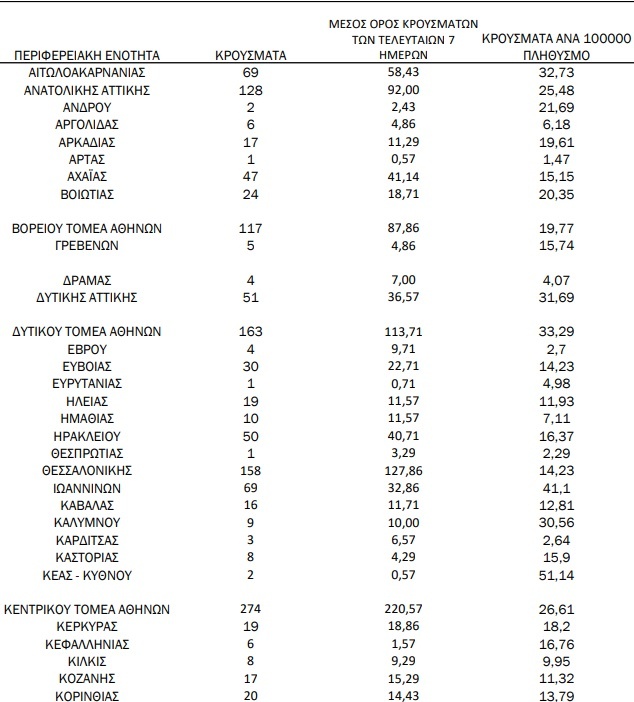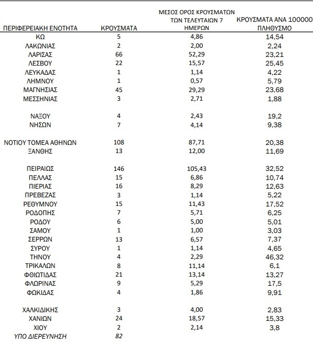 Στην περιφέρεια τα κρούσματα κατανέμονται ως εξής: