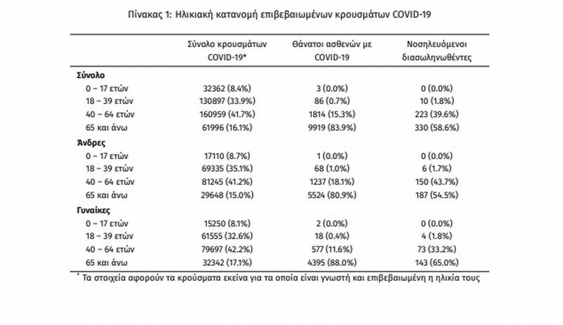 Ο συνολικός αριθμός των κρουσμάτων ανέρχεται σε 391.181 (ημερήσια μεταβολή +0,4%), εκ των οποίων 51,2% άνδρες.