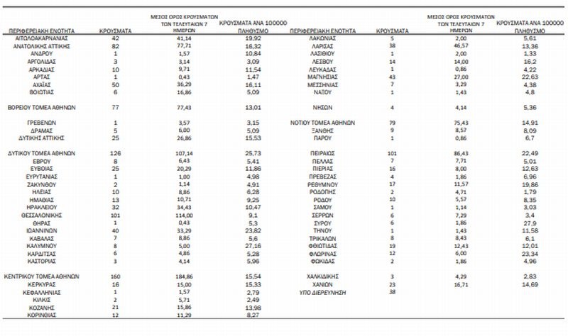 Τα κρούσματα ανά Περιφερειακή Ενότητα