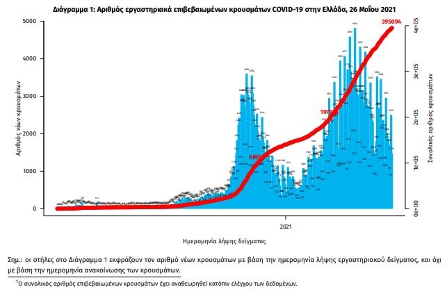 Με βάση τα επιβεβαιωμένα κρούσματα των τελευταίων 7 ημερών, 27 θεωρούνται σχετιζόμενα με ταξίδι από το εξωτερικό και 2.036 είναι σχετιζόμενα με ήδη γνωστό κρούσμα.