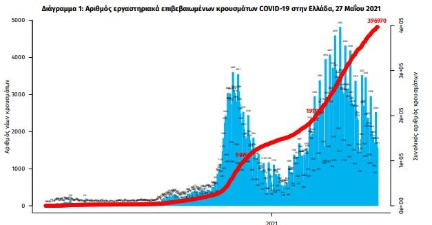 Κορονοϊός - Όλες οι ειδήσεις: Την Πέμπτη, 27 Μαΐου 2021, ο ΕΟΔΥ ανακοίνωσε, 1.905 νέα κρούσματα του νέου ιού στη χώρα, εκ των οποίων τρία εντοπίστηκαν κατόπιν ελέγχων στις πύλες εισόδου της χώρας.