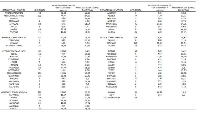 Τα κρούσματα ανά Περιφερειακή Ενότητα