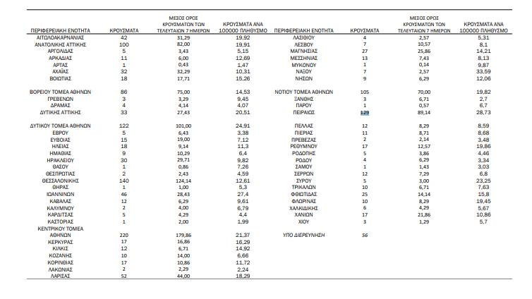 Στην Αττική τα κρούσματα κατανέμονται ως εξής: