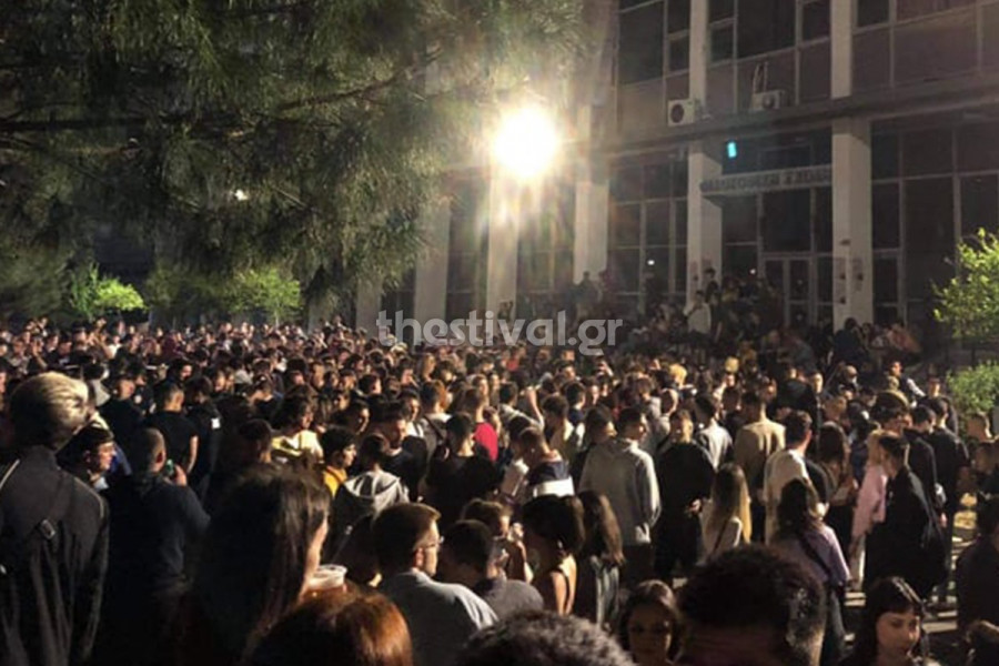 Από τις βραδινές ώρες της Παρασκευής και μέχρι τις πρώτες πρωινές ώρες του Σαββάτου η κατάσταση που επικρατούσε μπροστά από την Φιλοσοφική Σχολή του ΑΠΘ θύμιζε εποχές προ κορονοϊού.