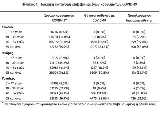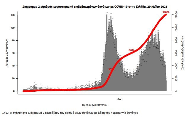 Οι νέοι θάνατοι ασθενών με COVID-19 είναι 29, ενώ από την έναρξη της επιδημίας έχουν καταγραφεί συνολικά 12.024 θάνατοι. Το 95.2% είχε υποκείμενο νόσημα ή/και ηλικία 70 ετών και άνω.