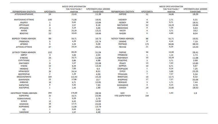 Στην Αττική τα κρούσματα κατανέμονται ως εξής: