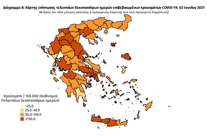 Με βάση τα επιβεβαιωμένα κρούσματα των τελευταίων 7 ημερών, 37 θεωρούνται σχετιζόμενα με ταξίδι από το εξωτερικό και 1.863 είναι σχετιζόμενα με ήδη γνωστό κρούσμα.
