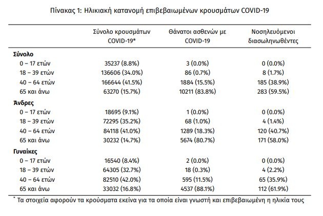 Οι νέοι θάνατοι ασθενών με COVID-19 είναι 39, ενώ από την έναρξη της επιδημίας έχουν καταγραφεί συνολικά 12.184 θάνατοι. Το 95,2% είχε υποκείμενο νόσημα ή/και ηλικία 70 ετών και άνω.