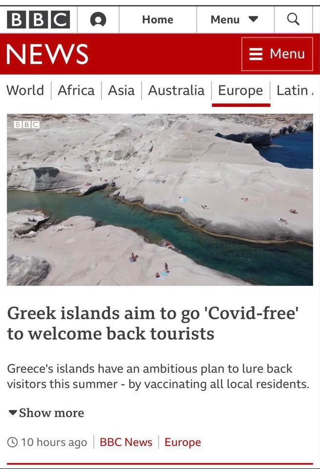 Σύμφωνα με το BBC, τα ελληνικά νησιά έχουν ένα φιλόδοξο σχέδιο να «δελεάσουν» τους τουρίστες ώστε να επιστρέψουν στα ελληνικά νησιά. Ποιο είναι αυτό το σχέδιο; Ο εμβολιασμός των ντόπιων κατοίκων των ελληνικών νησιών.