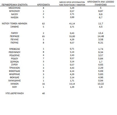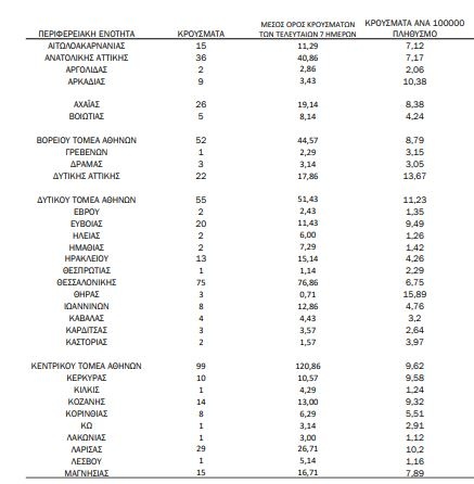 Η κατανομή κρουσμάτων ανά περιφερειακή ενότητα