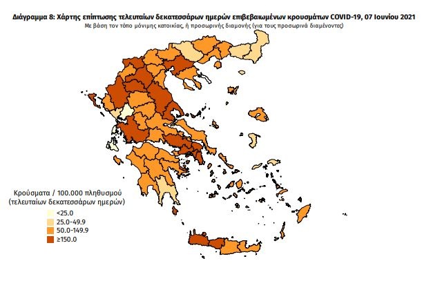 Κρούσματα σήμερα: Σχεδόν οι μισές μολύνσεις Covid - 19 εντοπίζονται σήμερα, Δευτέρα (07/06) στην Αττική, ενώ στη Θεσσαλονίκη καταγράφονται 75 νέες