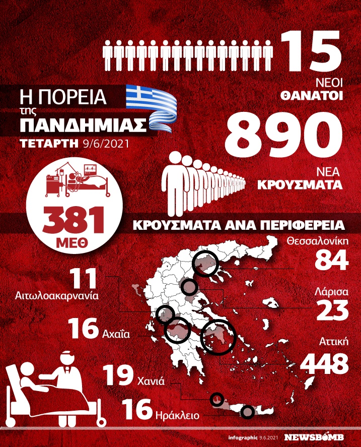 Κορονοϊός – Όλες οι ειδήσεις: Σημαντική μείωση κρουσμάτων ανακοινώθηκε την Τετάρτη (09.06) από τον ΕΟΔΥ. Όλα τα στοιχεία στο Infographic του Newsbomb.gr.