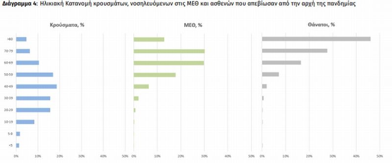 Ακολούθως παρουσιάζεται η ηλικιακή κατανομή των (α) συνολικών κρουσμάτων, (β) των περιστατικών που κατέληξαν σε θάνατο και (γ) των ασθενών που νοσηλεύονται διασωληνωμένοι: