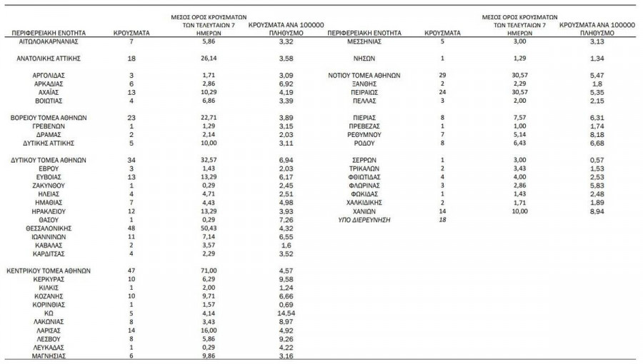 Τα κρούσματα ανά περιφερειακή ενότητα